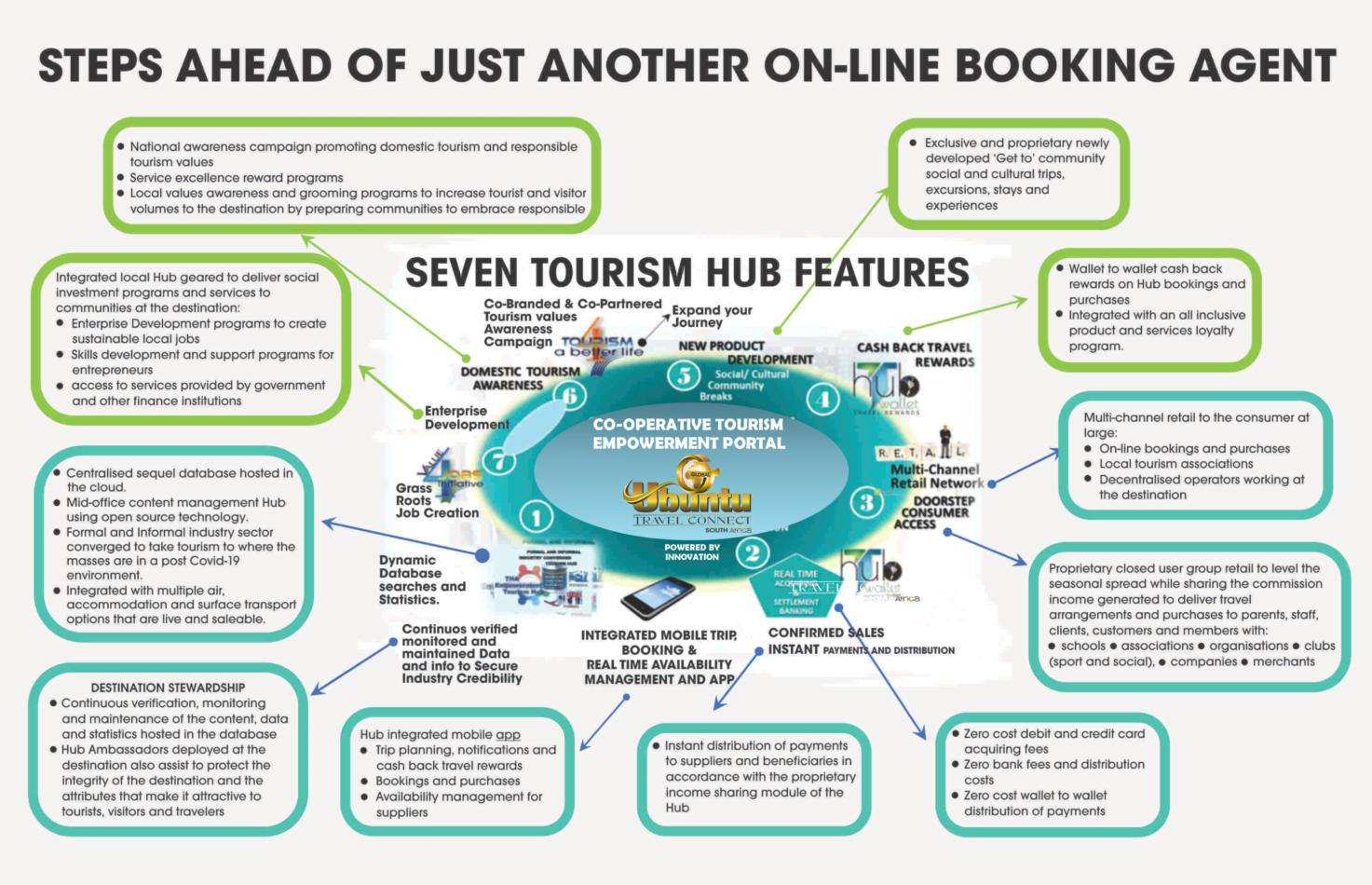 A MERGED FORMAL AND INFORMAL INDUSTRY SECTOR MID-OFFICE PLATFORMConverging and merging the informal and formal sectors of the tourism and travel industry into an open source 4IR and digitalized technology platform provide the opportunity to access tourism and travel content that is live and instantly tradeable from multiple sources, irrespective of whether that content relates to accommodation, air travel, car hire, tour operators or any other tourism product or service.